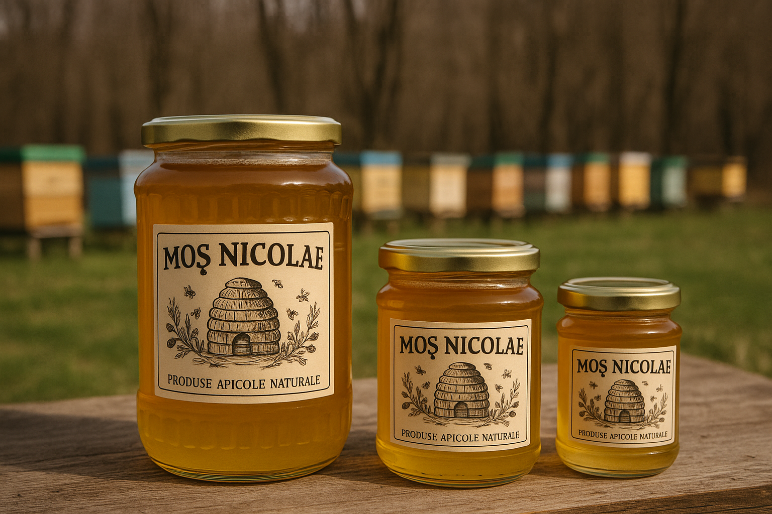 🏅 Mierea Moș Nicolae este 100% naturală, extrasă manual și ambalată cu grijă, păstrând toate proprietățile nutritive. Este disponibilă în borcane de 250g, 500g și 1kg, direct de la sursă.